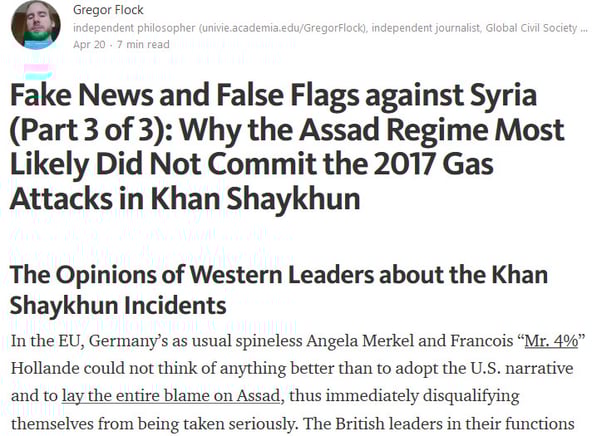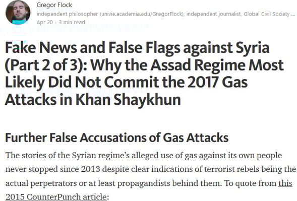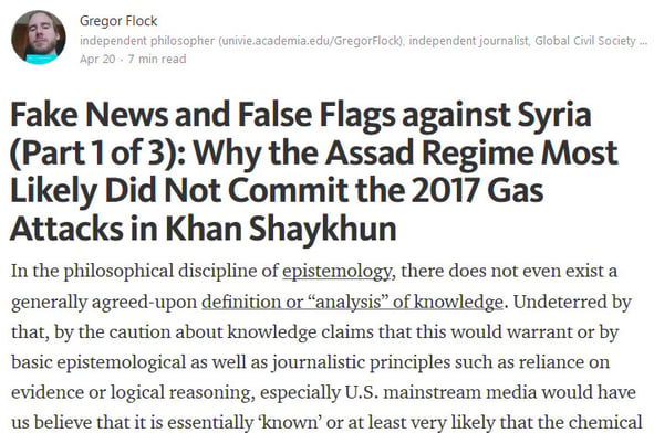 Published at https://medium.com/@GregorFlock/fake-news-and-false-flags-against-syria-why-the-assad-regime-most-likely-did-not-commit-the-2017-aacbcd06b804; also published at http://www.globalresearch.ca/false-accusations-and-fake-news-assad-government-did-not-commit-the-gas-attacks-in-khan-shaykhun/5586219